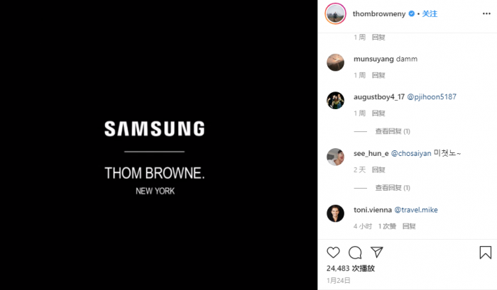 几周前,Thom Browne通过其官方账号发布一则短片,宣布将和三星公司建立合作。