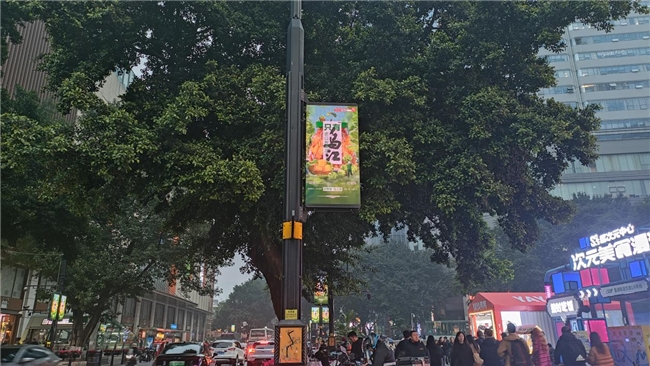 解放碑至朝天门沿路的灯杆屏幕分布广泛且密集,宛如一条条信息纽带串联起核心商圈。展播期间,每天数百万来自全国各地的游客、本地居民穿梭于此。灯杆屏幕以高频次的展示,让乌江榨菜的宣传内容无处不在。无论是行色匆匆的上班族,还是悠闲逛街的游客,在漫步街头巷尾时,都能轻易捕捉到乌江榨菜的广告画面与信息,实现了品牌宣传的全域覆盖与高频触达,有效加深了消费者对品牌的记忆。